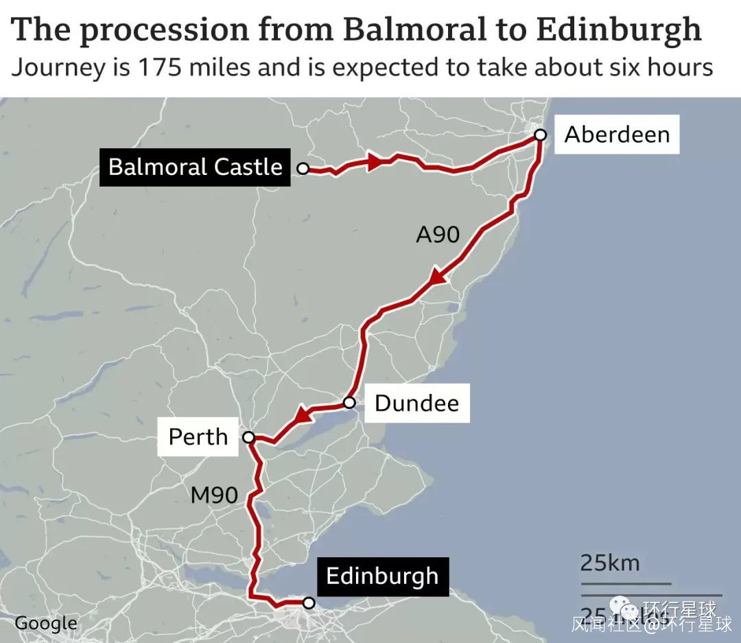 由於女王靈柩必須先返回倫敦,那就需要從蘇格蘭移靈,移靈的方式最後選擇走公路,需要行程六小時。靈柩抵達倫敦時,我們還會看到新晉首相特拉斯帶高官去迎靈。