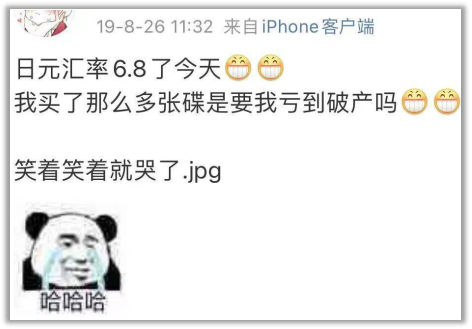只可惜好景不長,沒想到2019年的時候日元又升值。互聯網一陣“鬼哭狼嚎”: