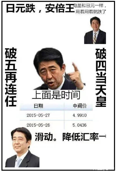 其實不用看數據,光是看國內網民們P的圖,就大概能知道日元匯率的變遷。