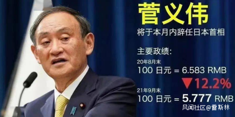2020年後日元又開始大跳水,中國網友們調侃説菅義偉最大的功績是讓日元貶值了。
