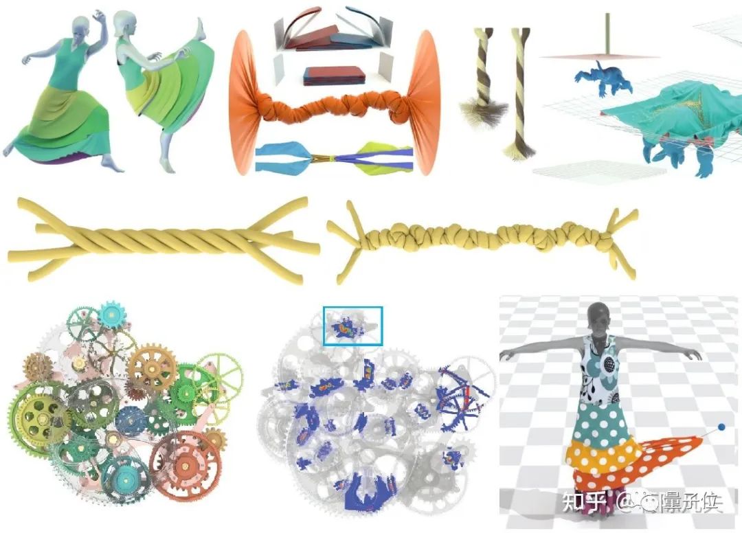 IPC及其2021年後續工作賦能了無數之前計算機仿真界根本做不了的事情,以絕對的穩定性、精確性、和數值收斂性涵蓋了三維柔性體(“百萬四面體的毛球”和“是繩子就堅持一百秒”):