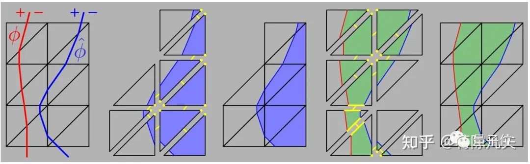 拓撲變化哪家強,Level Set敢稱王。要實現自然破裂,結合有限元和level set方法是一個非常巧妙的思路。Level Set有非常強的靈活性,可以從各種自然的角度去分裂四面體,而且可以完全避免重新劃分網格(remesh)。