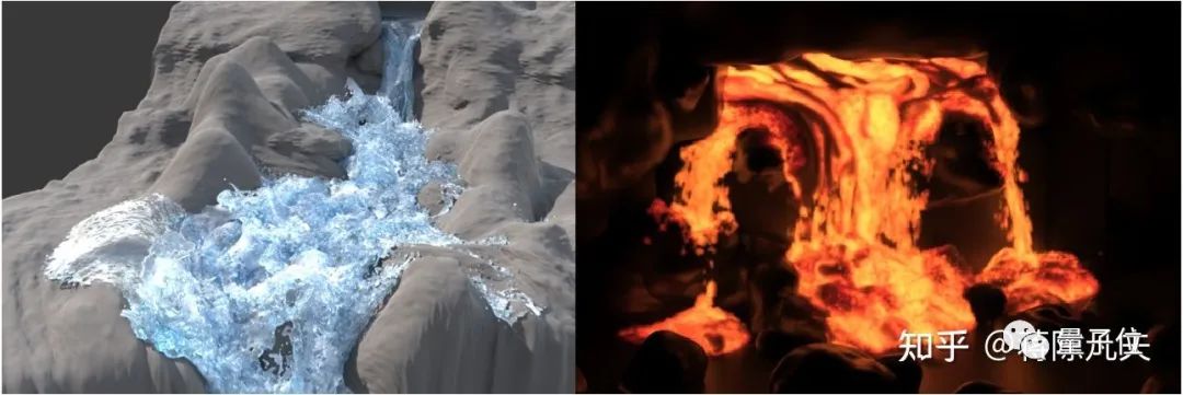 再結合對於角動量守恆方程的理論分析,跳過一些技術細節,Affine Particle In Cell (APIC)被誤打誤撞推導了出來。FLIP流體和MPM固體進入了一個新的篇章,藝術家們可以更輕鬆的得到它們需要的仿真結果粘稠度,無論是山川大河,還是岩漿滾滾。它們在我心中,是可以媲美冰雪的浪漫。