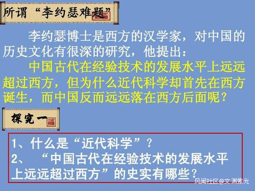 針對“李約瑟難題”,首先要問西歐什麼時間開始、為什麼能夠形成當今的科學範式,