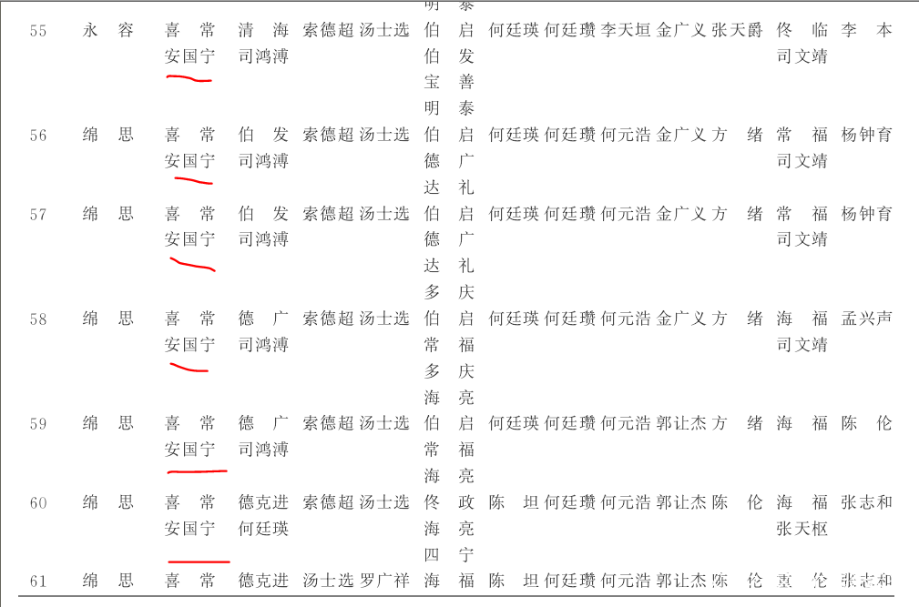 (2)本表依據的資料,是清代欽天監時憲書局所編的自順治元年至宣統三年(1644—1911年)共268年的《時憲書》內所附官員名單。