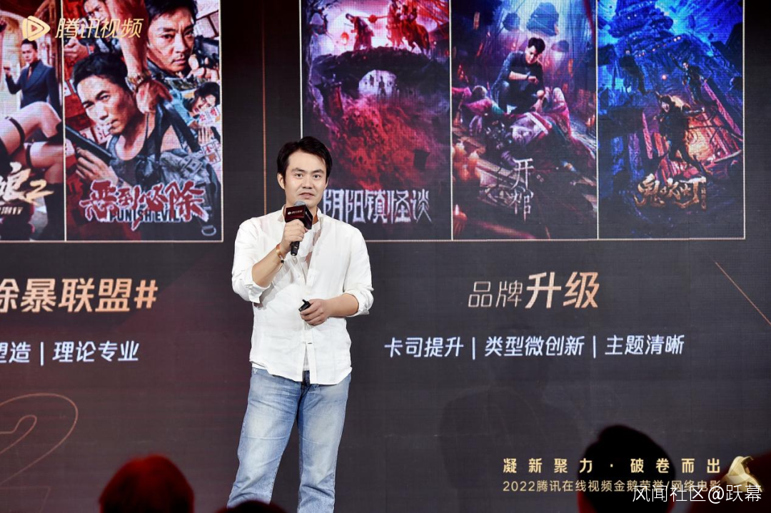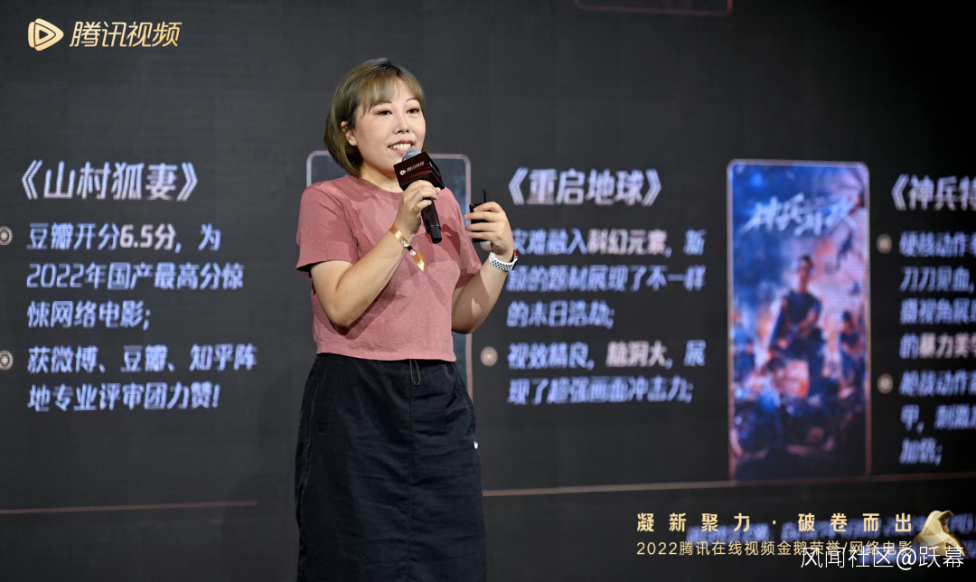 發佈會現場,騰訊視頻也對一年來表現亮眼網絡電影作品進行了嘉獎,騰訊在線視頻副總裁、總編輯王娟出席頒獎環節。其中,《陰陽鎮怪談》《四平警事之尖峯時刻》獲得“年度觀眾喜愛網絡電影”,《東北告別天團》《山村狐妻》獲得“年度口碑網絡電影”榮譽,此外,晏梓羚憑藉《極地追擊》攬獲“年度網絡電影製片人”榮譽,崔志佳憑藉《東北告別天團》《燒烤之王》榮獲“年度網絡電影導演”榮譽等,11項金鵝榮譽見證了這一年網絡電影行業的堅持與進步。