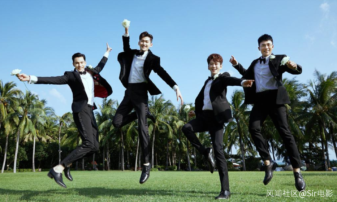 直升機出場只是前奏,婚禮上四個人一人挽着一個外國美女出場。