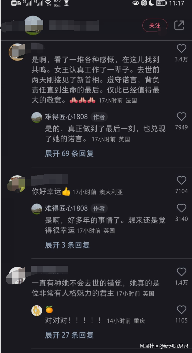 比起因為統一教名譽掃地的安倍,女王的形象顯然好得多。**英國女王的形象在前述的宏大敍事類型中,本身就是一種歲月靜好的符號。**長年對殖民歷史和王室形象的美化和去政治化宣傳,使女王成為西方社會之所以是文明的象徵。而超長的在位時間又讓人覺得世界會一直如此下去。而女王的身份又切合了當下某種女性主義的共情心理需求。這些光環造成的影響在當下如小紅書這類平台上體現的很直觀。
