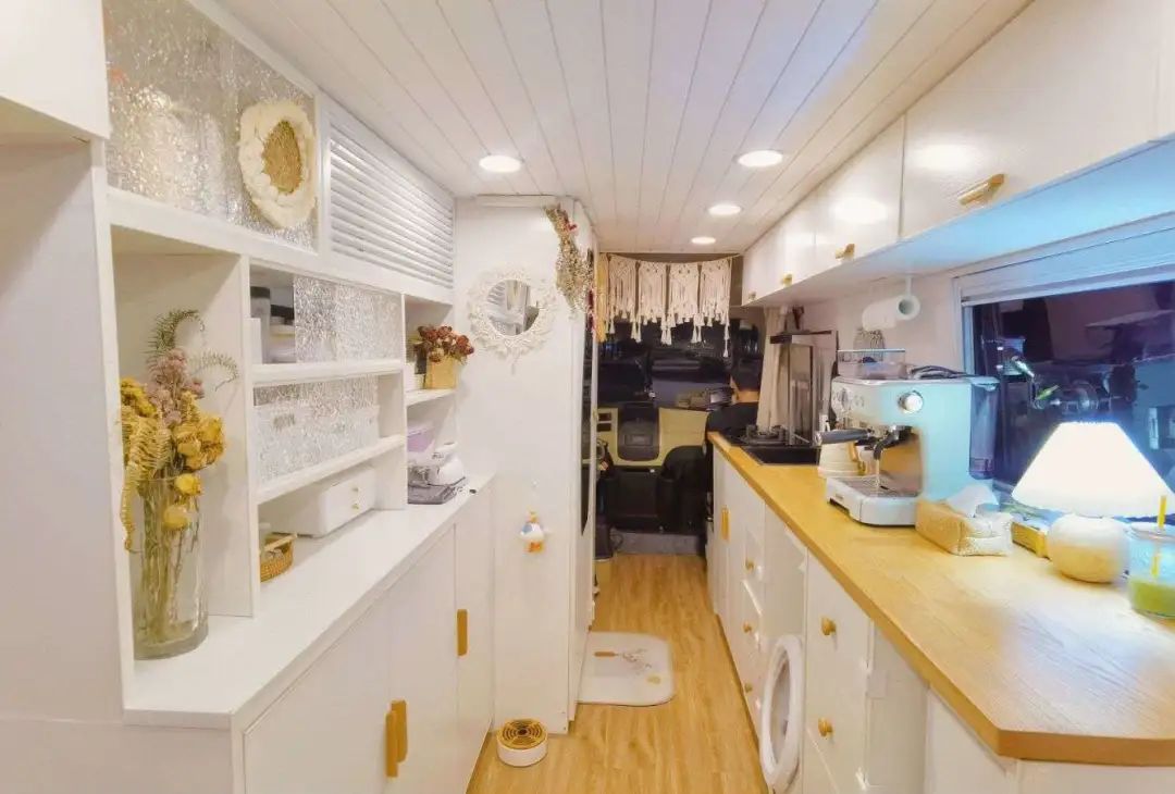 一開始,胡安媛還有點擔心安全性,等了解完住在房車裏的缺點,並覺得自己能承受之後,她才放下心來,決定開啓房車生活。2021年年底,兩人花13萬元買下了一輛二手的B型房車,之後一邊試住一邊在工作之餘動手改裝,一直到今年5月才算改裝完成,改裝費約3萬。