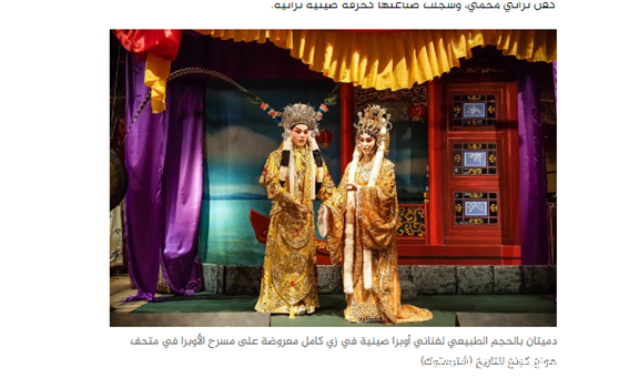 “香港歷史博物館中,與歌劇院中的中國歌劇演員真人同樣大小、穿着全套服飾的一對偶人。”