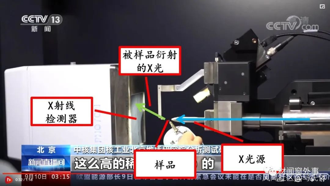 對礦物單晶體樣品進行X射線衍射分析(XRD)。晶體裏各個位置的原子會把X光散射向不同的方向,形成特定的衍射圖譜,從而能夠解析出精確的晶體結構。