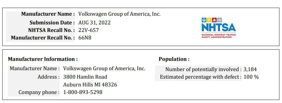 今年3月,大眾汽車宣佈在美國和加拿大加拿大召回246000輛大眾Atlas 和 Atlas Cross Sport 。召回報告指出,召回範圍包括2021-2023款大眾 Atlas FL車型113,899 輛(2019 年 10 月 4 日至 2022 年 2 月 10 日期間生產)、2019-2020 款大眾 Atlas車型32,720 輛(2019 年 8 月 1 日至 2020 年 3 月 6 日生產)、2020-2023 年大眾 Atlas Cross Sport車型76273輛(2019 年 9 月 25 日至 2022 年 2 月 10 日生產)。