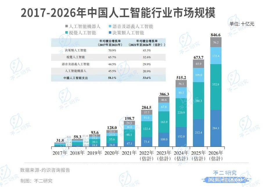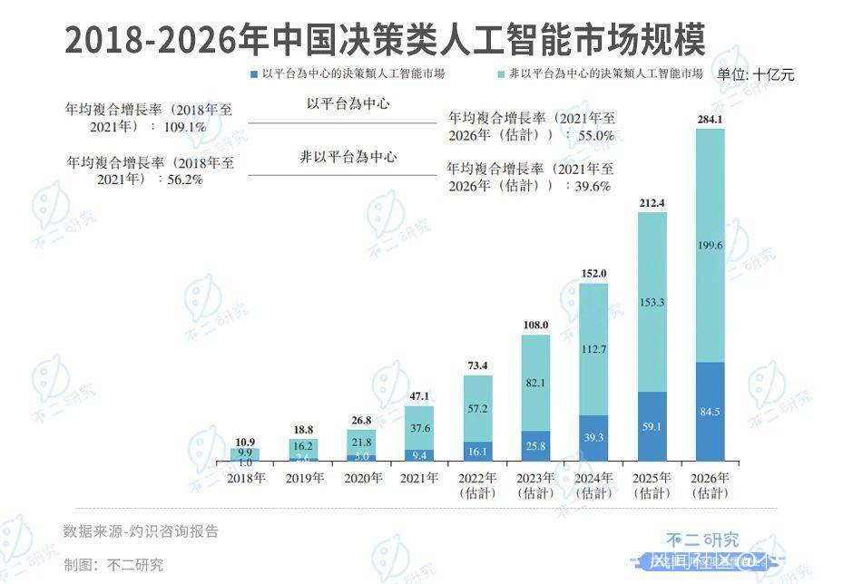 灼識諮詢報告顯示,2020年,中國決策類人工智能市場的支出規達到268億元,預計2026年將增長至2841億元,年均複合增長率為47.1%;高於視覺類、語音類和機器人的年複合增長率預期,後三者分別為36.4%、33.2%和23.8%。