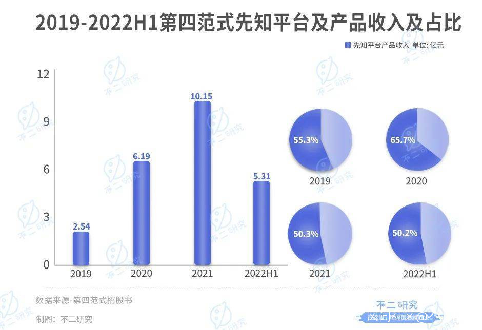 2019年-2021年以及2022上半年,其先知平台及產品收入分別為分別為2.54億、6.19億、10.15億和5.31億,佔總收入的55.3%、65.7%、50.3%和50.2%。