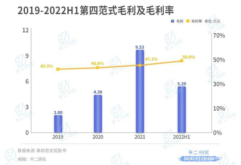 2019年-2022上半年,其營收分別為4.60億、9.42億、20.18億、10.58億;同期的毛利分別為2.00億、4.30億、9.53億、5.29億。