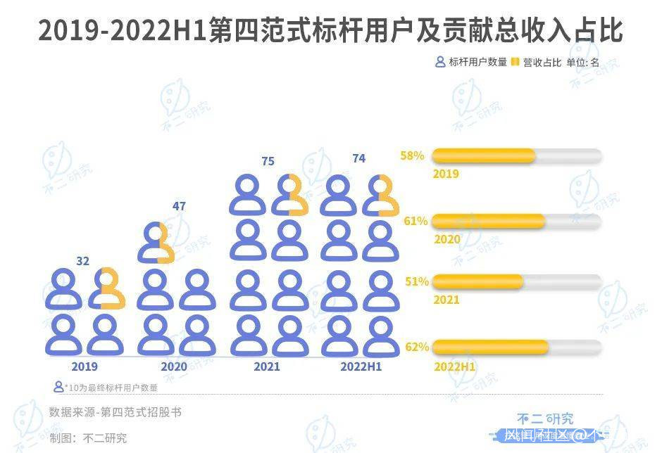 同期,第四範式分別服務32名、47名、75名及74名標杆用户;標杆用户收入分別貢獻總收入的58%、61%、51%及62%。三年半內,標杆用户的營收佔比過半。