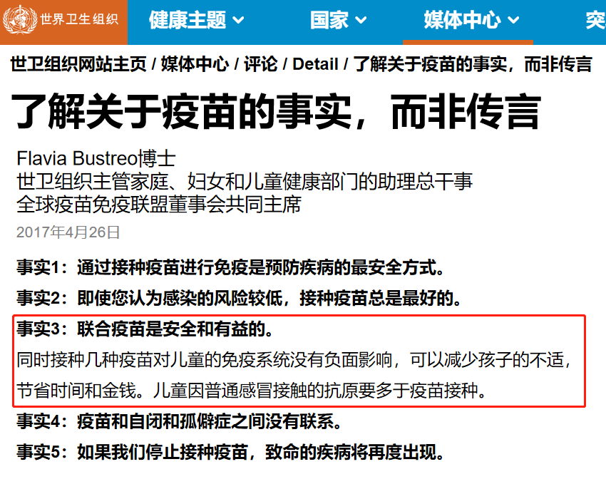 世界衞生組織也明示:兒童同時接種幾種疫苗,安全且有益。