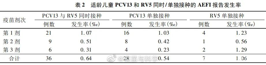 最終,在這項研究中,兩種疫苗同時接種、單獨接種沛兒13、單獨接種樂兒德分別有5.6萬人次,5.2萬人次和0.7萬人次,觀察到的不良事件報告率分別為0.64‰、0.54‰、1.06‰,這些報告率的差異經過統計檢驗沒有意義。
