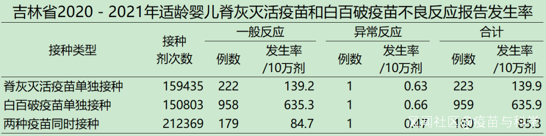 吉林省疾控中心對這個問題進行了研究,他們分析了2020~2021年脊灰滅活疫苗和白百破疫苗各自單獨接種以及同時接種後的安全性監測數據,結果甚至有點出乎意外。
