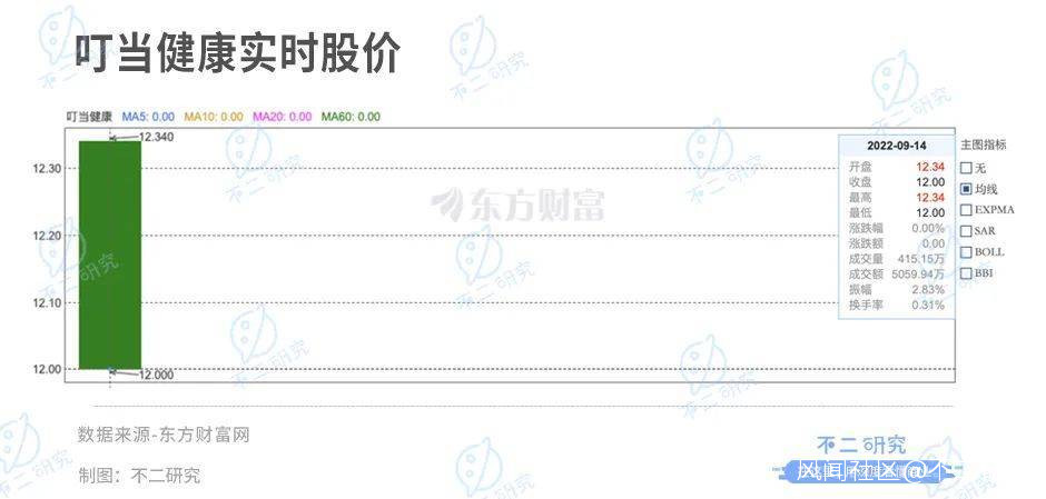 叮噹健康發行價為12.00港元/股,開盤價為12.34港元/股,較發行價上漲2.83%;截至9月14日港股收盤,叮噹健康平收12港元/股,對應市值161億港元(市值摺合人民幣142億元)。