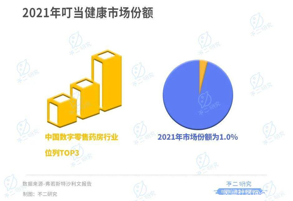 叮噹健康是一家通過開創線上至線下解決方式為主導的即時藥品零售及醫療諮詢平台。其在招股書援引弗若斯特沙利文報告稱,按2021年收入計,其是在中國數字零售藥房行業中排名第三,市場份額為1.0%。