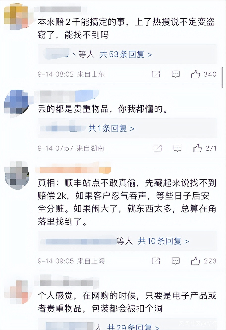 對此,有網友稱:“保價保了個寂寞”“難道越是保價品越是容易丟;保價越高,丟失的風險越大?”“之前手機丟了説人家沒保價,這下好了,順豐同城,還保價了!怎麼也這個結果?”
