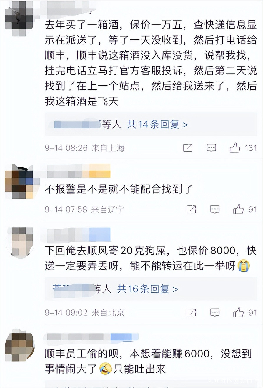 對此,有網友稱:“保價保了個寂寞”“難道越是保價品越是容易丟;保價越高,丟失的風險越大?”“之前手機丟了説人家沒保價,這下好了,順豐同城,還保價了!怎麼也這個結果?”