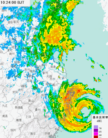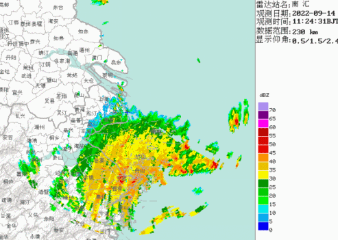 今天中午,梅花本體已經開始影響上海,上海開始出現間歇性的颱風雨。