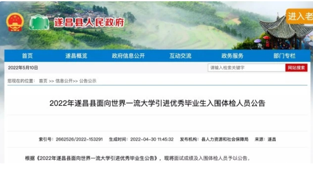 最近,浙江省麗水市遂昌縣的一份《2022年遂昌縣面向世界一流大學引進優秀畢業生入圍體檢人員公告》公示名單更是引發熱議。名單顯示,24個工作崗位的入圍人員幾乎全部來自復旦大學、上海交通大學、浙江大學等知名高校,碩博士的比例更是高達95.8%。