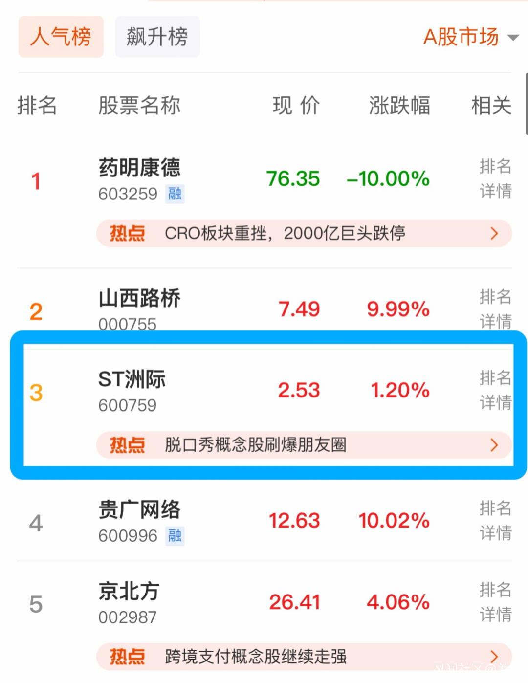 今天下午收盤的時候呢,小辣椒看了一眼 ST 洲際,只有 1.2% 的漲幅了。