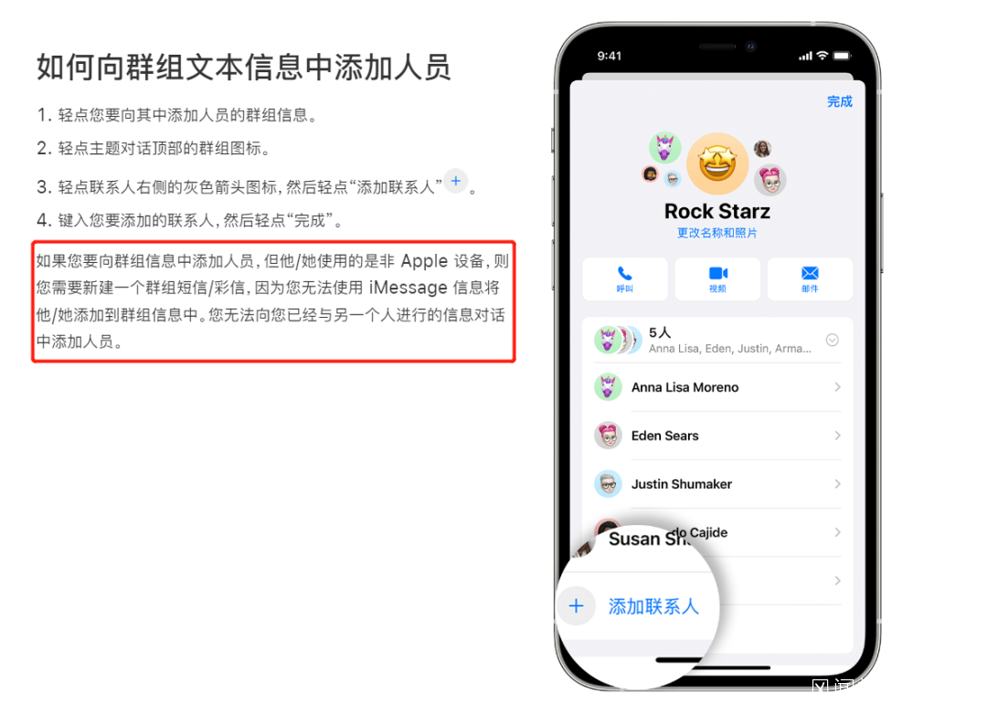 在 iMessage 羣聊模式下,要是想拉一個安卓用户進羣,唯一的辦法是拋棄原有的羣聊,新建一個羣組短信。