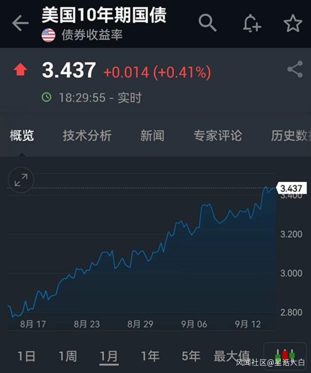 9月13日,在美國通脹數據公佈,超出市場預期後,美債市場就出現崩跌的走勢,收益率大漲。