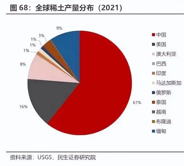 2021年數據顯示,中國稀土總儲備為4400萬噸(美國為180萬噸),產量16.8萬噸(美國為4.3萬噸),由此可見,美國短期內勉強還能維持稀土的軍用需求。