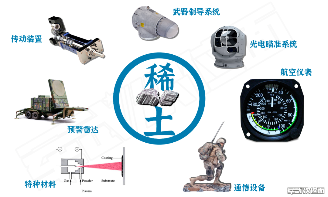 而稀土更大的價值,自然在軍事方面。例如F-22這樣的隱身戰機大量使用的就是稀土鈦合金和鎂合金。而雷達的磁控管、真空管和濾波器、相控陣元件中的環形線圈、射頻環行器也離不開稀土磁體。美軍的反輻射導彈、精確制導炸彈等打擊武器,這種需要稀土永磁電機作為伺服電機。而激光測距儀必不可少的玻璃着色劑,同樣來自於稀土元素。