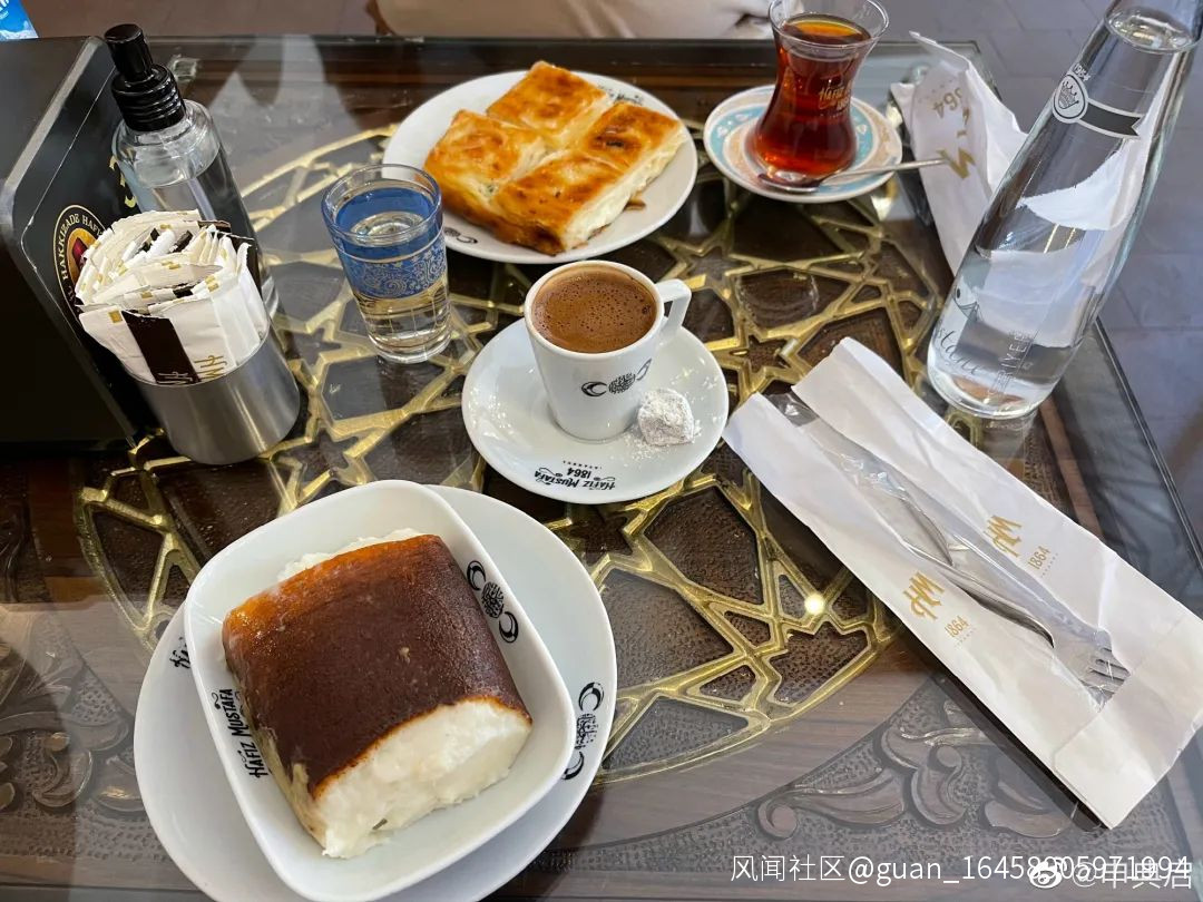 今天伊拉克的朋友穆哈穆德帶我到了一家伊斯坦布爾的甜品店,他説其實奧斯曼時期,土耳其人吸收了大量的阿拉伯文化。所以土耳其的甜品和阿拉伯甜品品類基本上是一樣的,名字叫法都差不多。這個甜品店看上去很老,要往下走到一個像窯洞一樣的地方,下面環境很好。我點了一份布丁和傳統土耳其咖啡,上來之後,發現這個布丁吃上去味道怪怪的,因為我從沒有吃過這種味道的甜品,我甚至在腦海裏找不出任何一個與這道甜品相對應我吃過的食物。