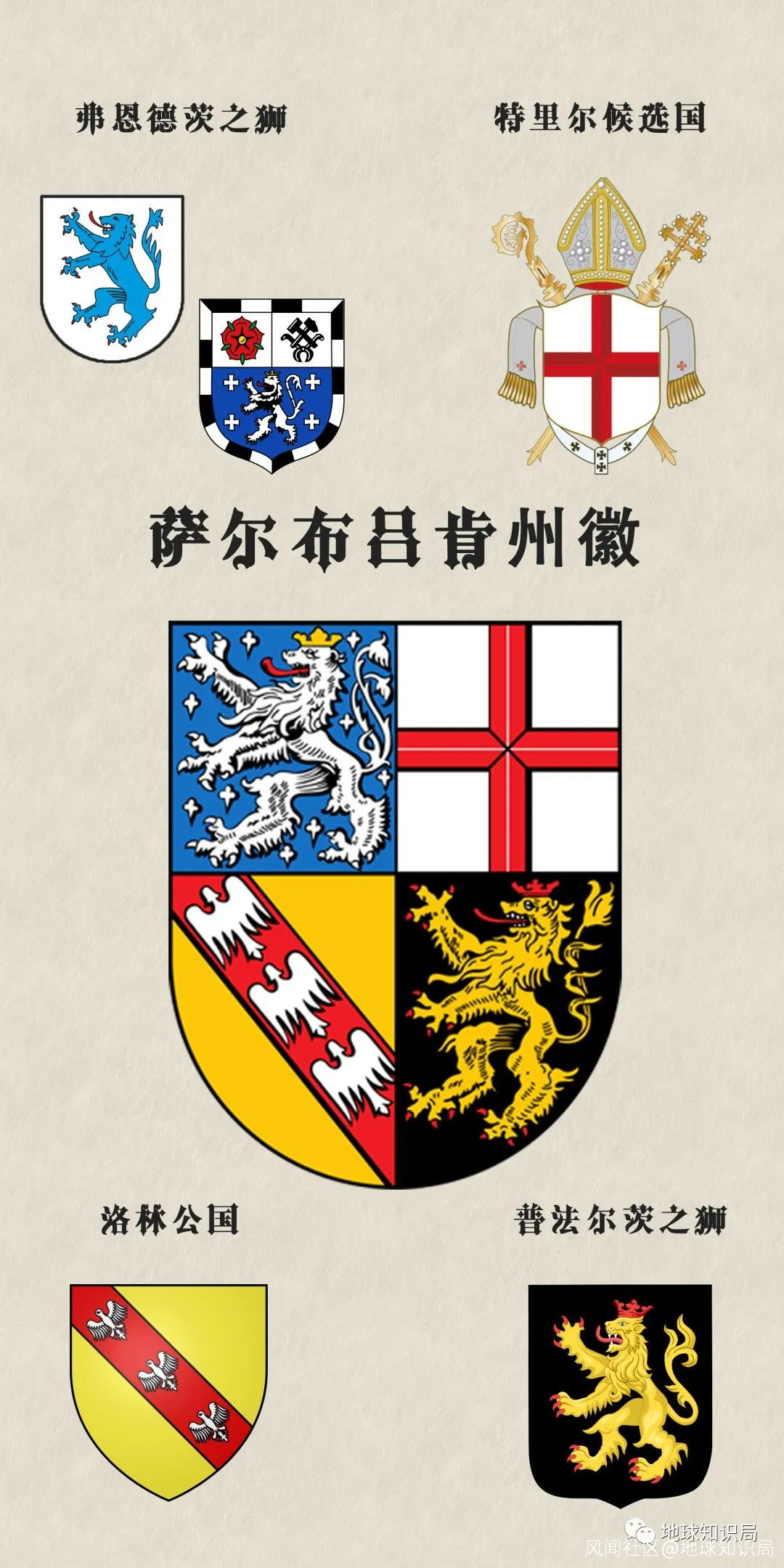 右下部分,藍底白獅是薩爾布呂肯的市徽”