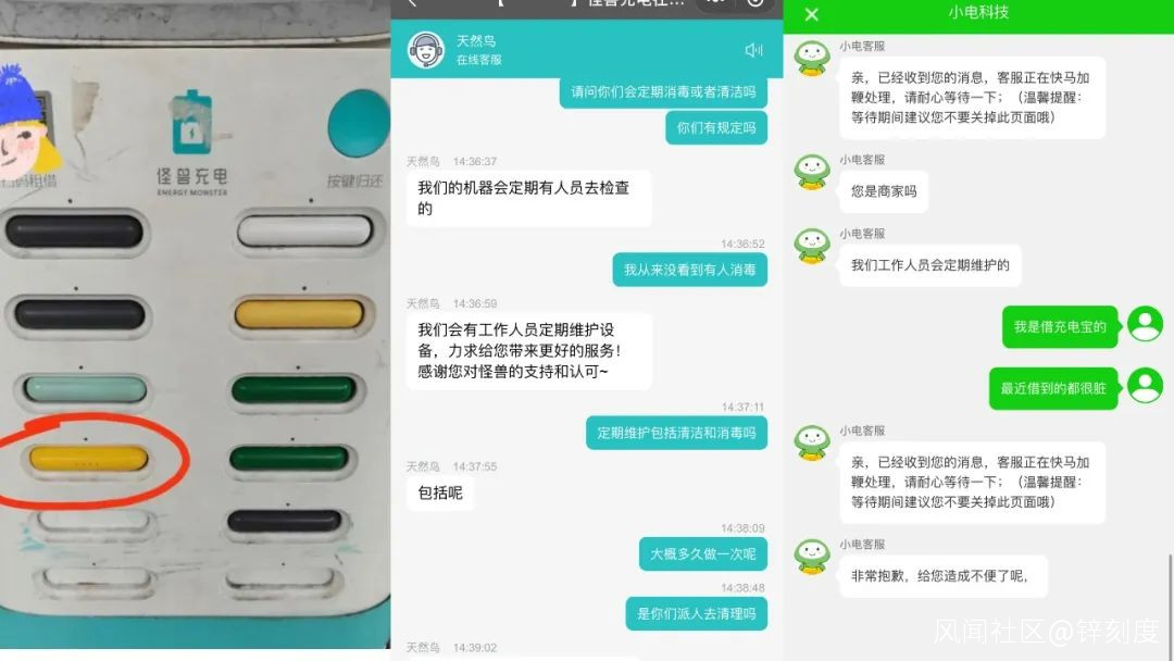 髒亂的共享充電寶和客服回應