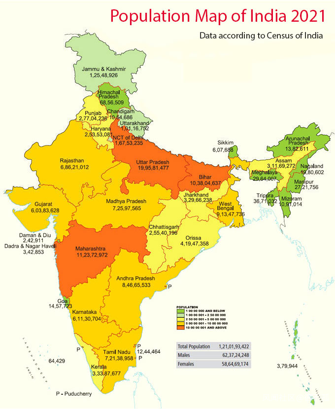**▲**2021年印度人口分佈地圖。圖源:Indiaonlinepages