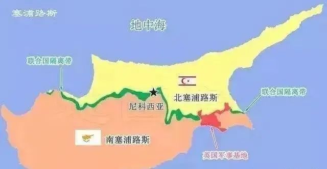另一個衝突集中點是位於土耳其南部的一座叫“塞浦路斯”的島國,塞浦路斯原本是奧斯曼帝國的領土,1878年成了英國的殖民地,1960年自己獨立成了共和國。