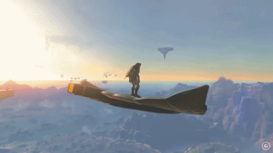 當然,既然大部分的故事都是發生在空中,原先我們的滑翔翼顯然是不夠用了,官方在預告片最後也展示了一款更大的類似滑翔傘的載具,林克的掛票升級成了站票。