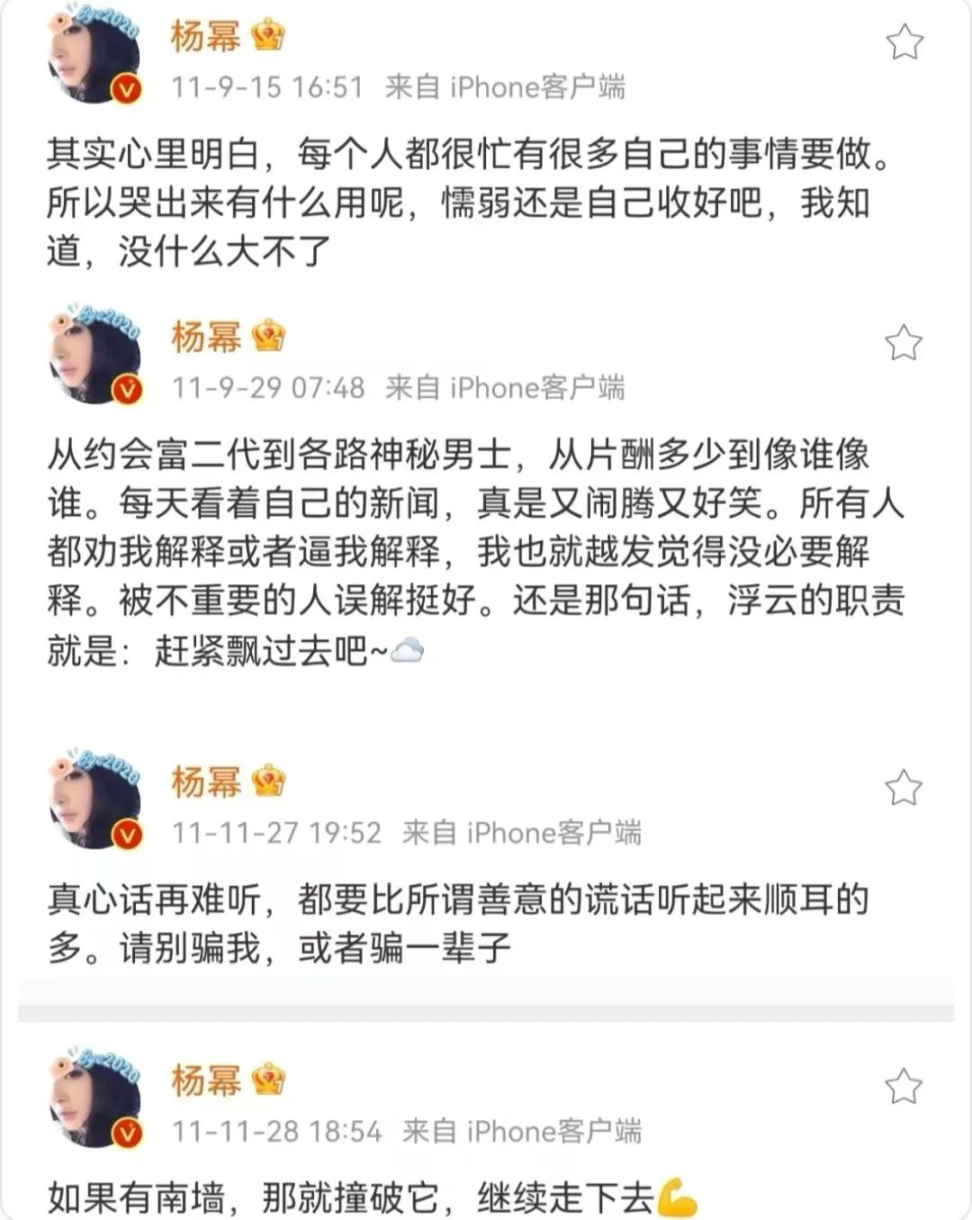 楊冪曾經在微博寫的雞湯、心事或者「非主流」自拍,大家都看得津津有味。