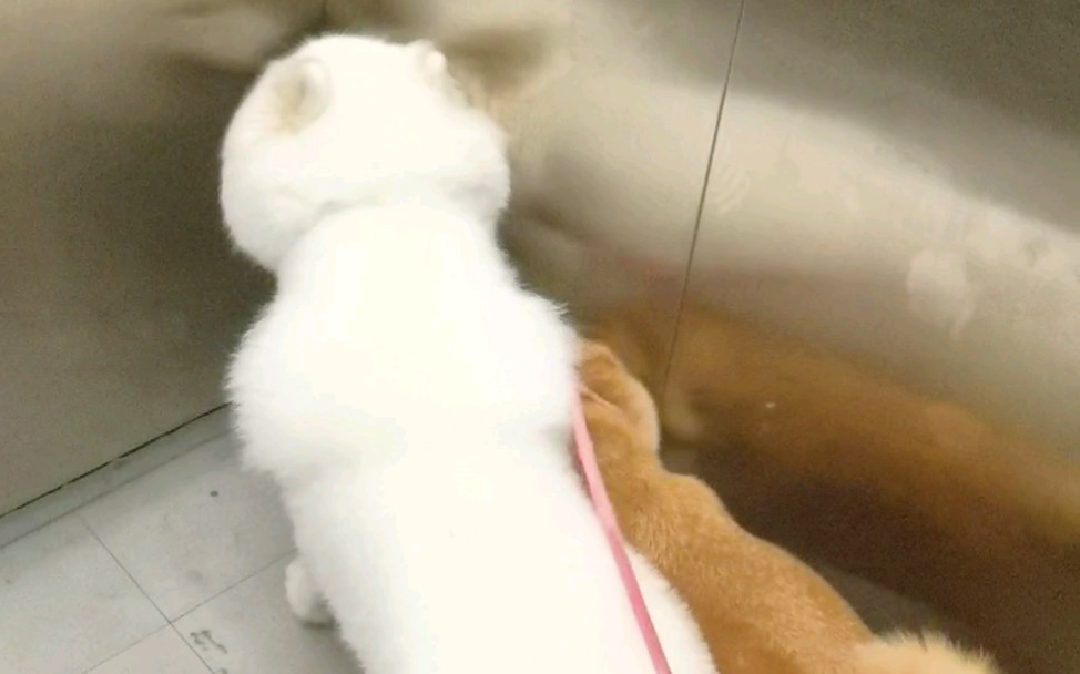 有一次電梯裏沒人,它倆還是把頭埋在角落裏,甦醒心疼壞了,告訴它們電梯沒人,可以衝外坐。