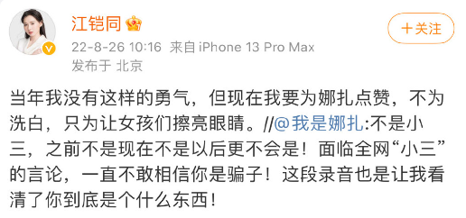 先是江鎧同跳出來力挺娜扎,哭訴自己當年被全網指責為小三時,沒有這樣的勇氣。