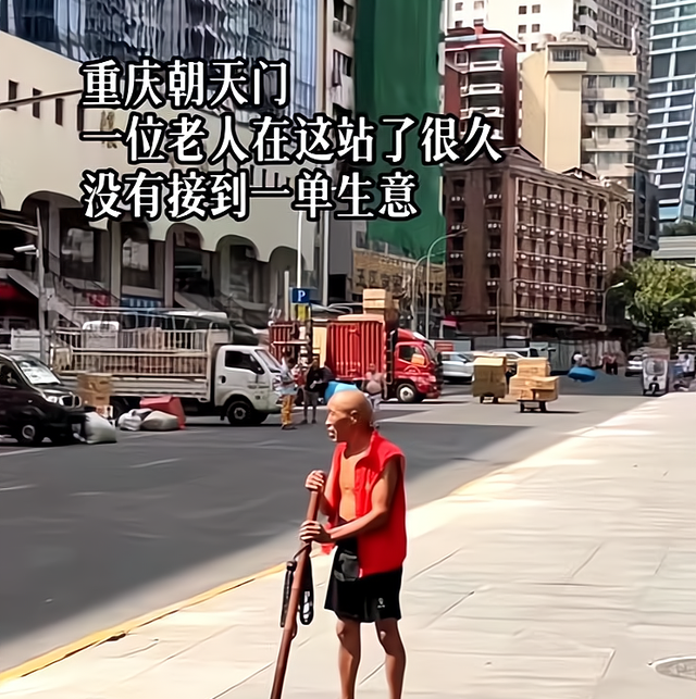 他手持一根棒棒,穿梭在遍佈台階的山城重慶,替人幹搬運的體力活賺血汗錢。