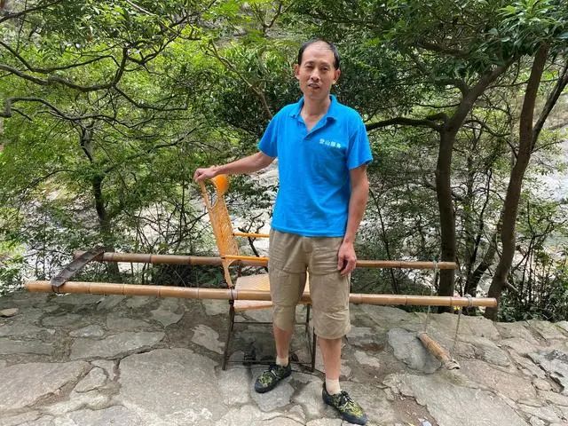 重慶某景點,一位旅遊博主,選擇當地的滑竿(坐轎子)上山。