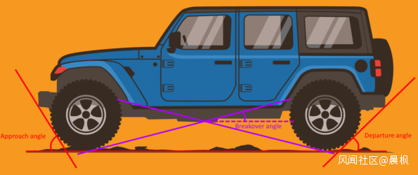 短懸挑對進入角、離去角的影響大,短軸距則影響“擱淺角”(breakover angle,不知道正式譯名叫什麼)