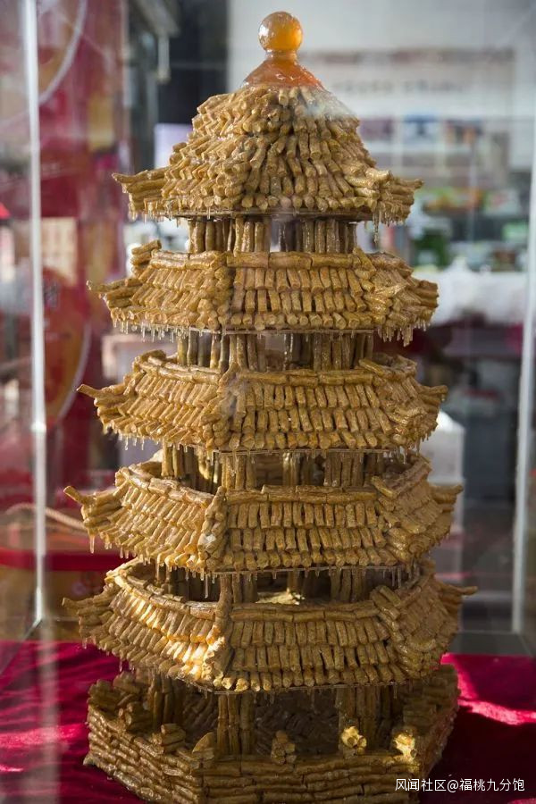 製作好的蜜供,最常見的是寶塔形,但也有萬字形,自家用的蜜供大約六寸,而宮觀廟宇的蜜供則更為高大,堆砌難度高,但成功一個,便成了天然的招牌。這樣的點心,在舊時是家家須得有的。到了年底,誰家不要對着灶王爺拜祭,求他老人家上天去給自己全家説兩句好話?