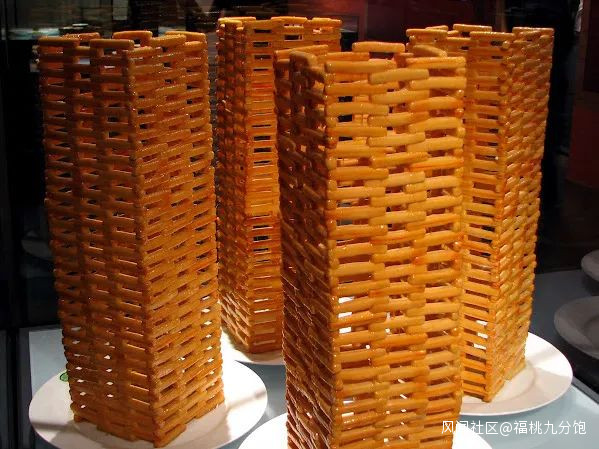 因為到了臘月,蜜供單子多,往往前一天炸好,第二天搭壘,一點也錯不得,前兩個月的炸麻花,算是沙場秋點兵的演習。原料備好,接下來便是另一種功夫:“砌”。