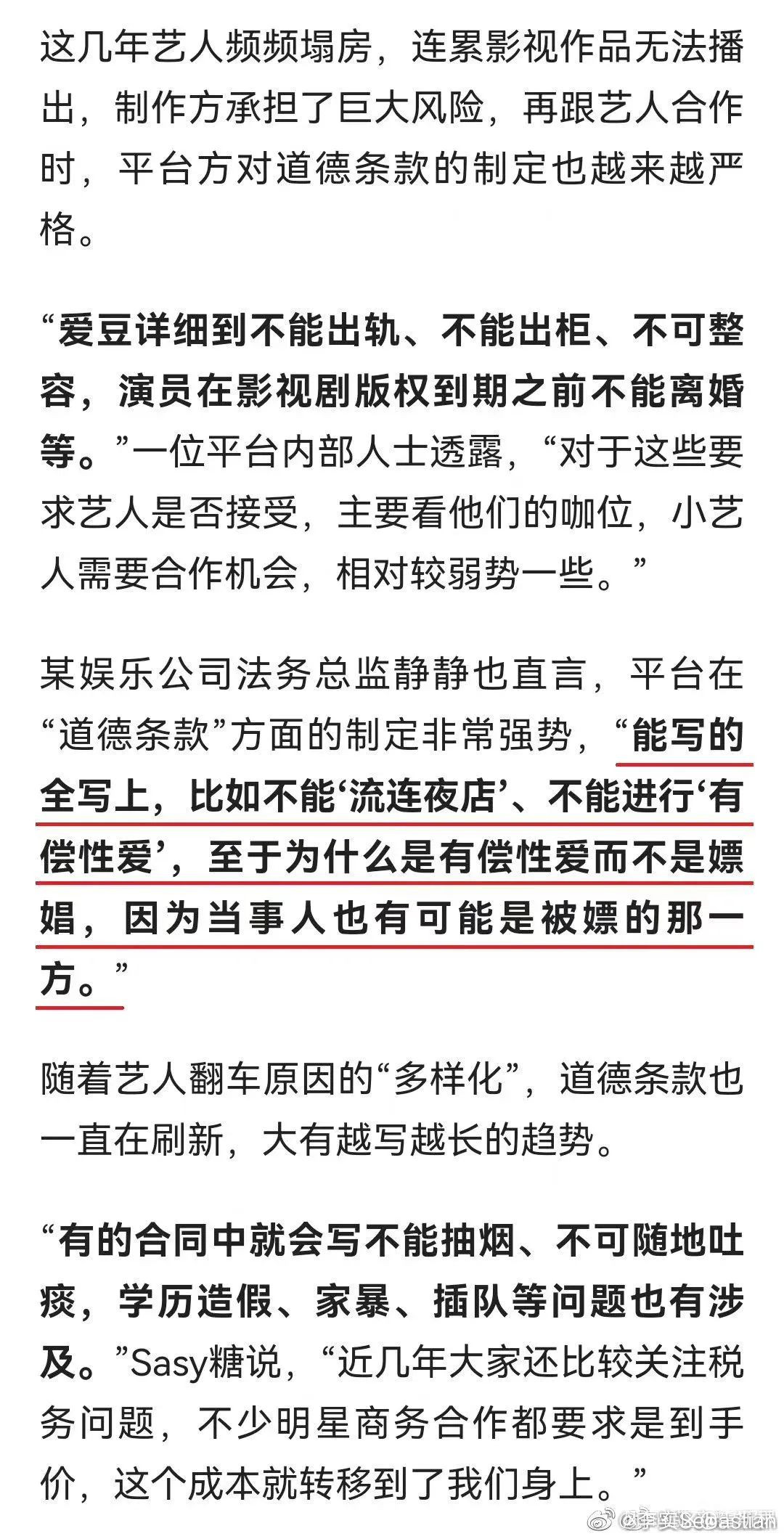 伴隨着明星塌房原因的多樣化,這個條款恐怕只會越來越長,越來越詳細。