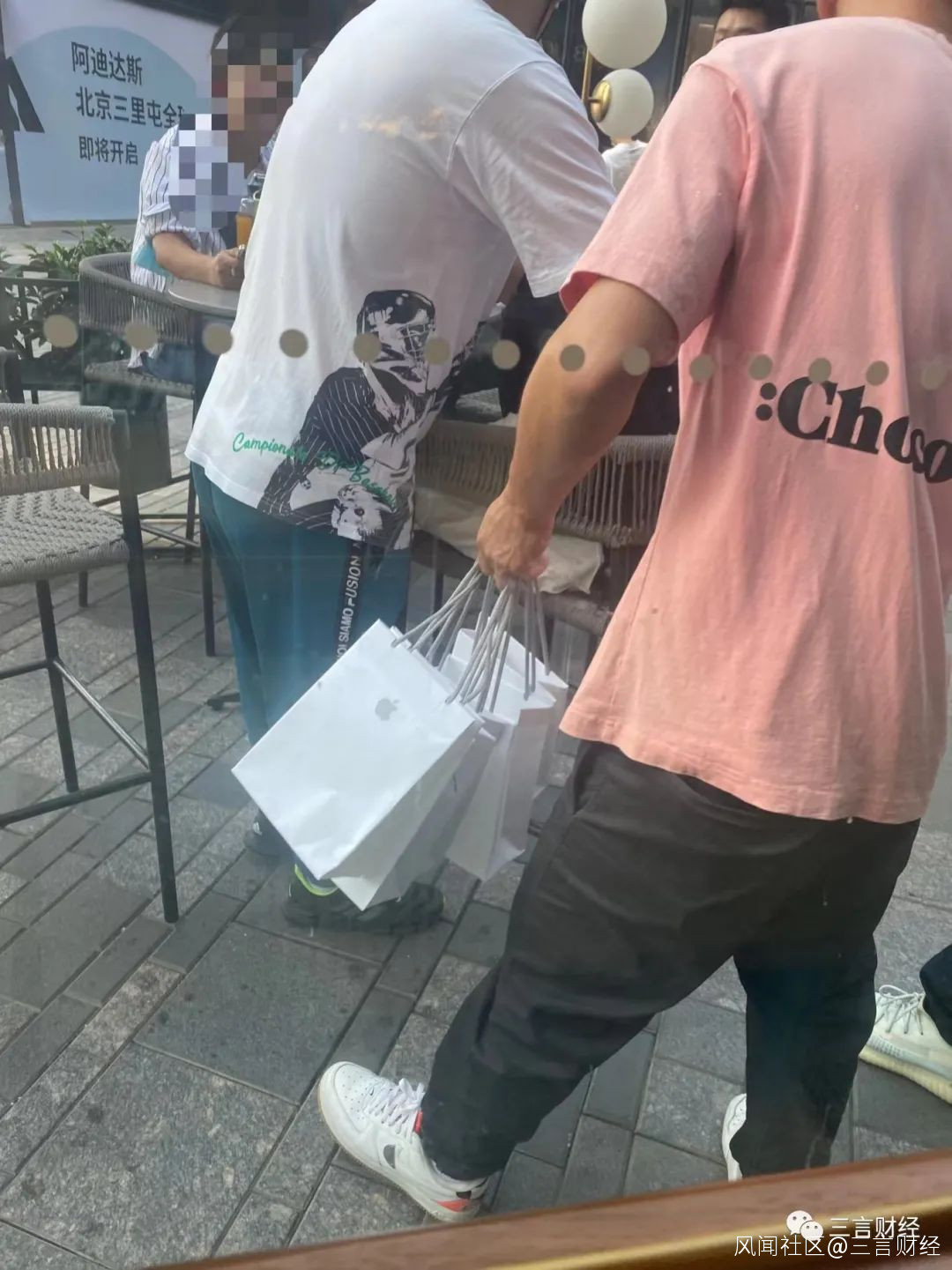 線下蘋果直營店的開店時間是早上8點,三言財經在7點左右到達了北京三里屯蘋果店。